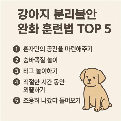 오늘은 많은 보호자분들이 고민하는 강아지 분리불안 완화 훈련법 TOP5를 함께 알아볼게요.