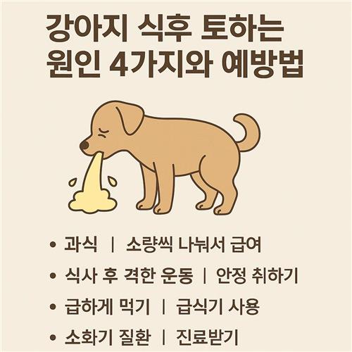 오늘은 강아지가 식사 후 토하는 원인 4가지와 그에 맞는 예방법을 쉽고 친절하게 알려드릴게요.