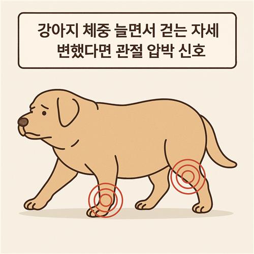 강아지가 체중이 늘면서 걷는 자세에 변화가 생겼다면, 단순한 변덕이 아니라 관절에 보내는 중요한 신호일 수 있어요.