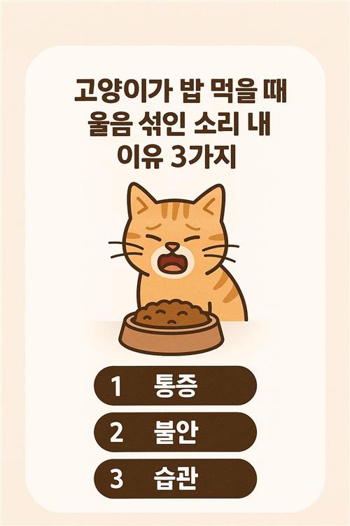 함께 사는 고양이가 사료를 먹거나 캔을 먹을 때, 평소보다 음성에 떨림이 섞이거나 작은 울음소리를 내는 모습을 본 적이 있으신가요? 많은 보호자분들이 “배고파서?”, “맛있어서?”, “어딘가 불편해서?” 사이에서 고민하곤 합니다. 이 글은 그런 순간을 정확히 해석하고 불필요한 걱정을 줄이기 위해 준비했습니다. 실제 사례에서 자주 관찰되는 행동 신호를 정리하고, 건강상의 위험과 단순한 습관을 구분하는 기준, 집에서 바로 적용할 수 있는 관리 팁을 단계별로 안내해 드립니다. 마지막에는 믿을 수 있는 참고 링크와 자주 묻는 질문도 모아두었으니 차근차근 따라오세요.