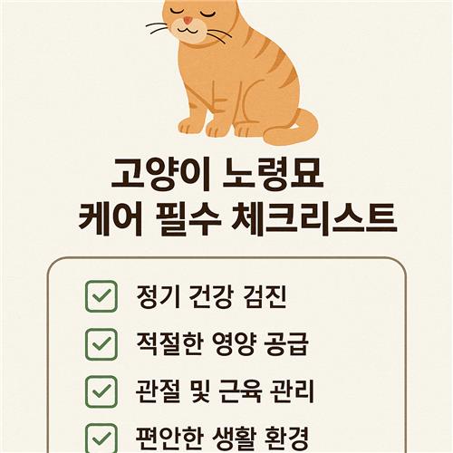 이번 글에서는 10살 이상의 노령묘를 위한 필수 케어 정보를 체크리스트 형식으로 정리해보았습니다.