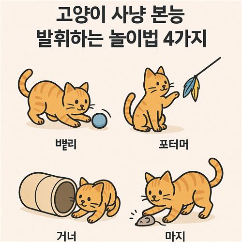 고양이의 사냥 본능은 타고난 생존 본능이며, 이 욕구를 충족시켜주는 활동이 꼭 필요해요.