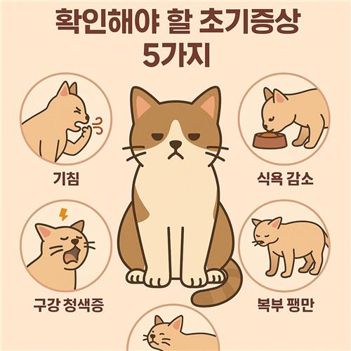 오늘은 고양이의 숨소리가 거칠어졌을 때 주의 깊게 확인해야 할 초기증상들을 함께 살펴보았어요.