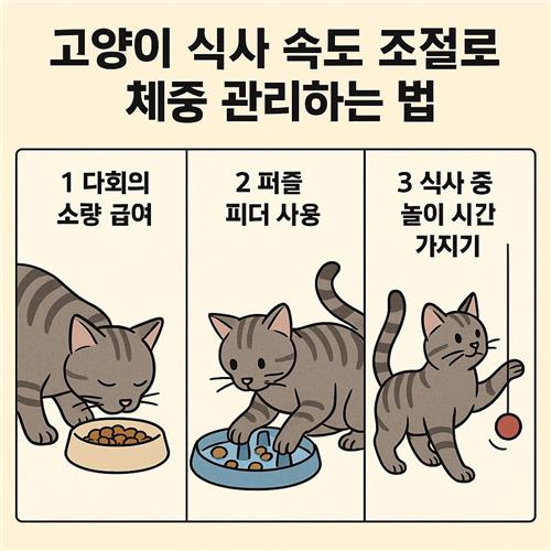 고양이체중관리, 고양이식사속도, 슬로우보울, 퍼즐피더, 고양이비만, 분할급여, 사냥놀이, 캣닢아님행동관리, 젖은사료활용, 집사팁