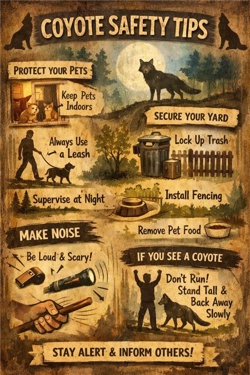 코요테는 일반적으로 인간을 직접적으로 공격하는 경우는 드물지만, 소형 반려동물은 잠재적인 위험 요소로 간주될 수 있다.