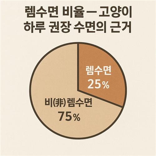 | 새끼 고양이 | 16~20시간 이상 | 30% 내외 | 뇌 발달이 한창이라 렘수면 비율이 상대적으로 높은 편 |