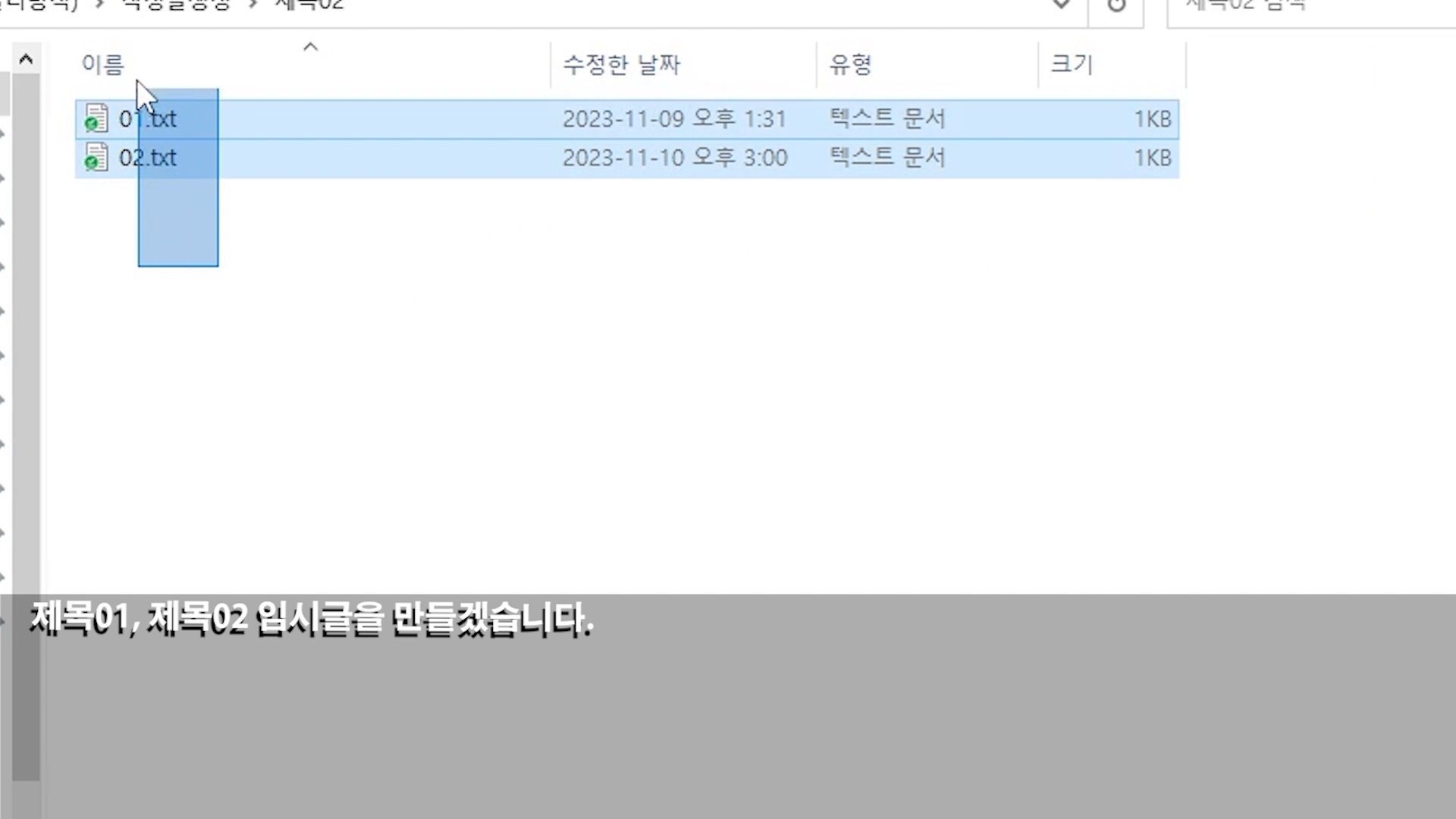 - file명 기준으로 순차적으로 임시컨텐츠을 만듭니다.