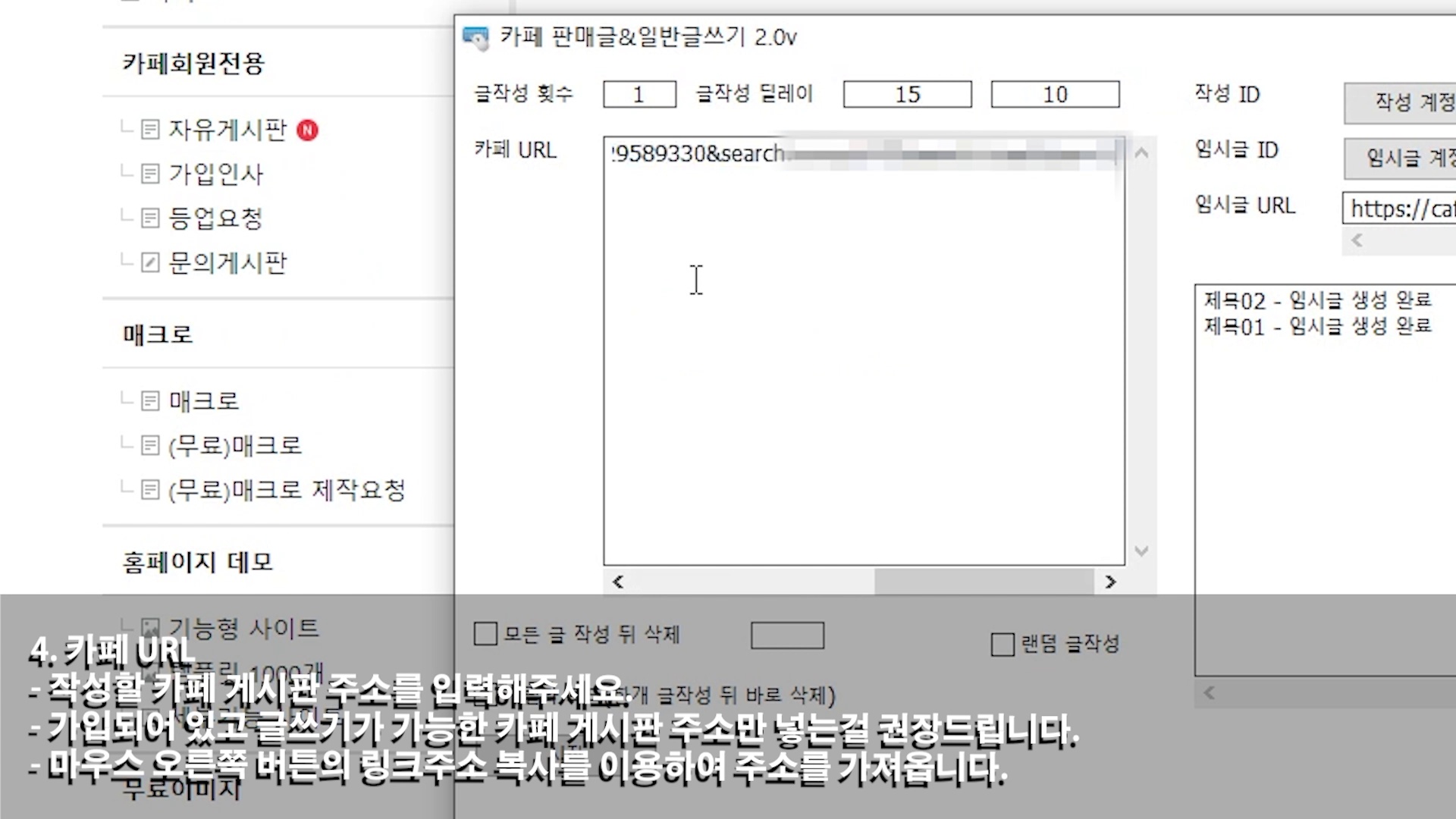 - 문구작성할 N카페 게시판 URL를 입력해주세요.