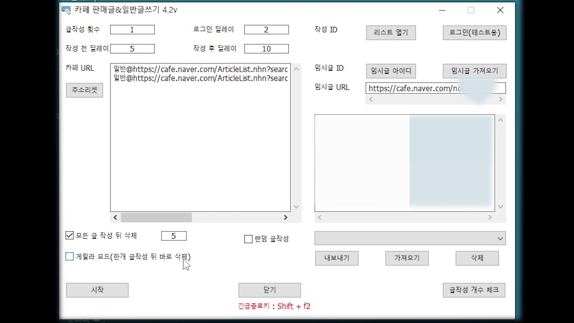 - 무분별한 도배로 인해 제재를 당할 수 있으시니 999이런 수치는 사용하지 마시고 하루 150건 미만으로 게시글작성되도록 사용해주세요.