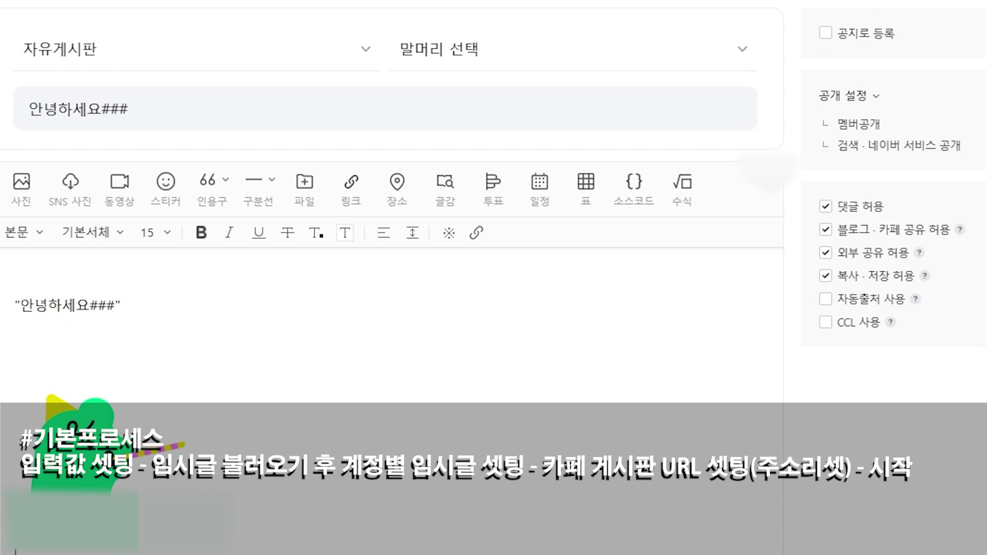 입력값 셋팅 - 임시컨텐츠 불러오기 후 아이디별 임시내용 셋팅 - CAFE 게시판 URL 셋팅(URL리셋) - 시작