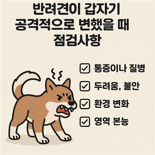 평소에는 순둥순둥하던 우리 반려견이 어느 날 갑자기 짖거나, 으르렁거리거나, 낯선 행동을 보인다면 당황스러우실 거예요. 갑작스러운 공격성은 단순한 성격 문제가 아닌, 건강이나 스트레스 등 다양한 원인에서 비롯될 수 있습니다. 오늘은 그런 상황에서 반드시 확인해야 할 점검사항을 단계별로 알려드릴게요. 우리 반려견을 더 잘 이해하고, 다시 평온한 일상으로 돌아갈 수 있도록 함께 알아봐요!