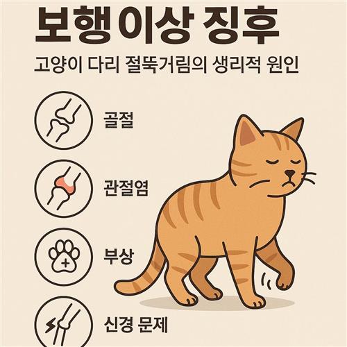 고양이절뚝거림,고양이보행이상,고양이관절질환,고양이근육통,고양이슬개골탈구,고양이골절증상,고양이신경질환,고양이건강관리,반려묘질병정보,고양이수의학