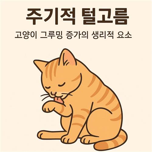 고양이와 함께 살다 보면 어느 날 갑자기 그루밍이 더 잦아진 것 같아 걱정될 때가 있죠. 단순히 털이 많이 빠지는 시기라 그런 건지, 아니면 스트레스나 질병 신호는 아닌지 헷갈리기도 합니다. 이 글에서는 주기적인 털고름과 그루밍 증가가 어떤 생리적 이유에서 비롯되는지를 차근차근 풀어보면서, 보호자가 어떤 기준으로 살펴보면 좋은지까지 함께 정리해 보려고 해요. 편하게 읽으면서 우리 고양이의 몸 안에서 무슨 일이 일어나고 있는지 같이 들여다볼까요?